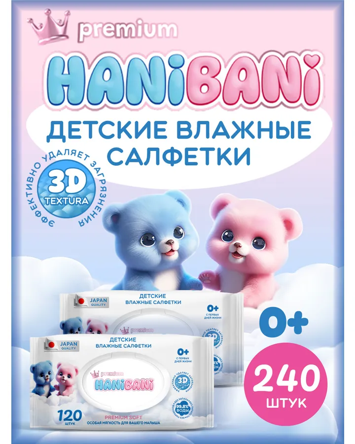 Влажные салфетки HANIBANI антибактериальные 2 упак. 120 шт.