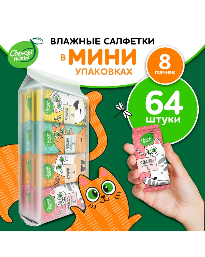 Влажные салфетки Свежая нота 8 упак. 64 шт.