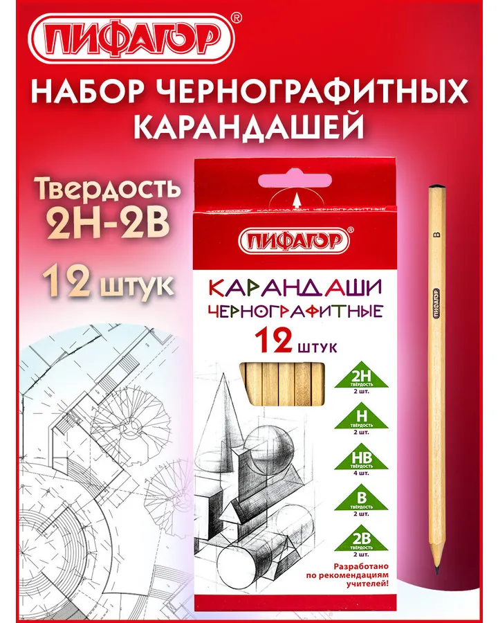Карандаши чернографитные Пифагор 12 шт.Карандаши отличные, идеально подходят для черчения!