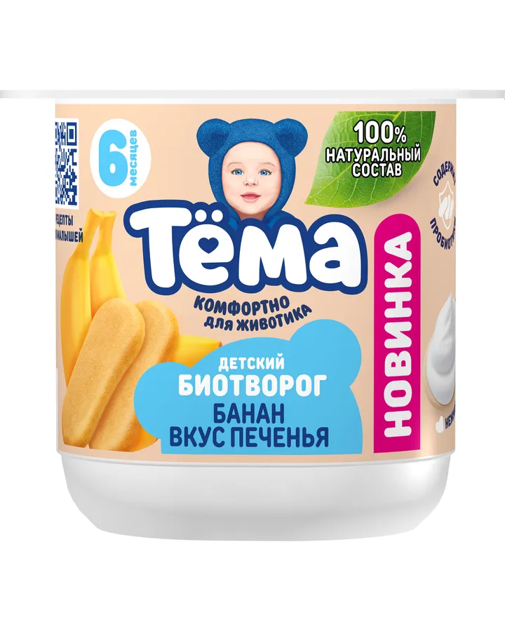 Биотворог Тёма Банан и вкус печенья 4% 95г