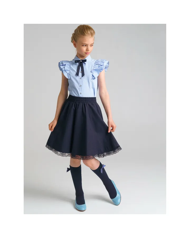 Юбка понравилась. Она на резинке, можно отрегулировать талию. Никаких молний, застёжек. Приятный материал. На рост 134 взяла юбочку 140.Длина получилась выше колен. Есть место для подписи имени и фамилии ребенка что удобно для школы.