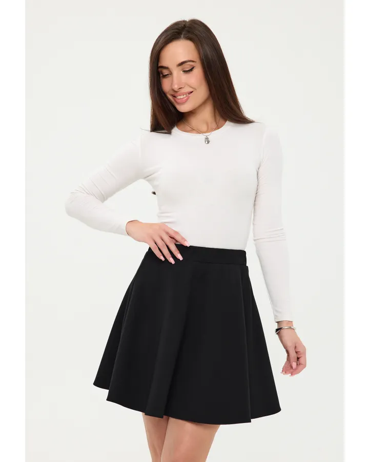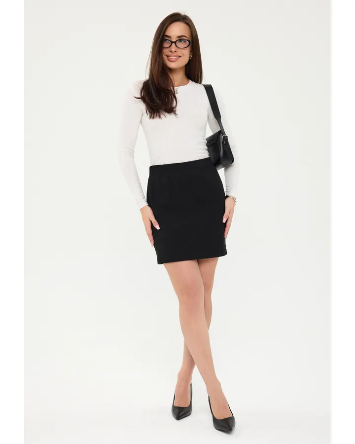 Довольна! Юбка аккуратно подчёркивает талию и бёдра, приятно облегает. Ткань плотная , не видно линии белья.