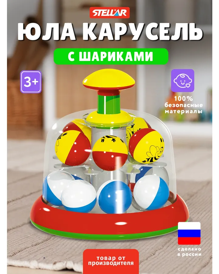 Компактная, яркая, качественный пластик, издаёт прикольный гул при вращении, ребёнку в 11 месяцев понравилось наблюдать, сама пока не раскручивает, приносит папе