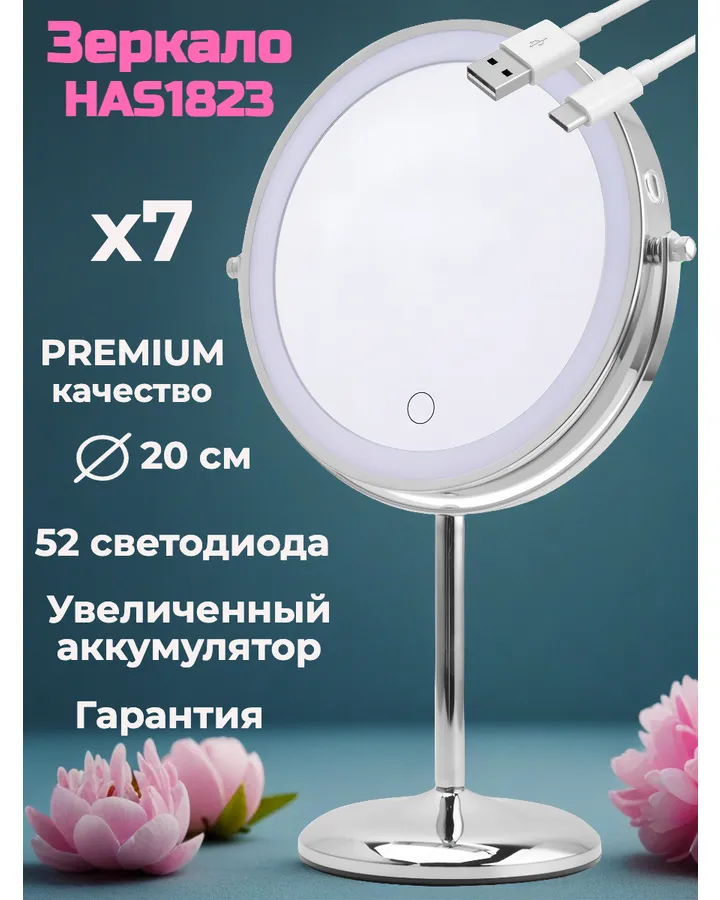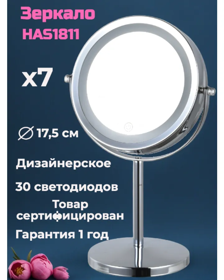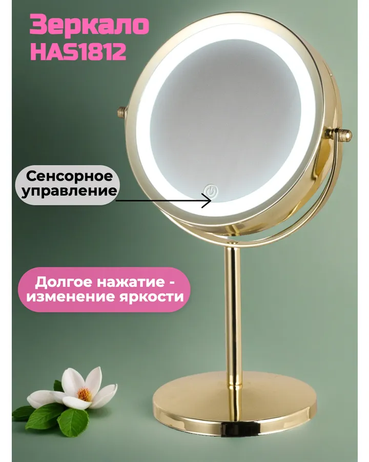 Зеркало HASTEN настольноеОчень красивое зеркало, достойное. Легкое в сборке, устойчивое, подсветка работает - глаза не слепит, увеличение комфортное. Упаковано отлично, коробка целая. Брали в подарок, дарить не стыдно. Рекомендую.