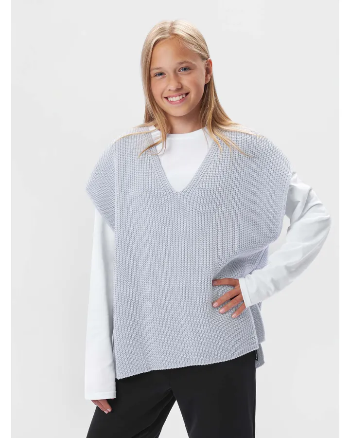 Огромная. На 134 впору 164, буду носить сама. Ну просто огромная жилетка