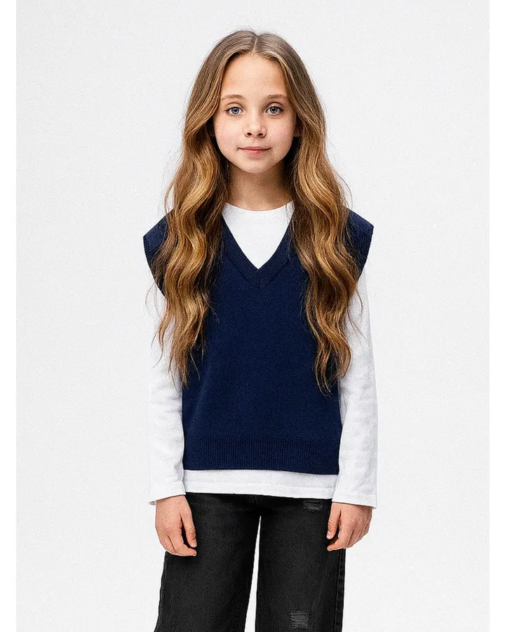 Хороший жилет. Идет в размер. Свободный. Стильно смотрится. Для школы самое то.