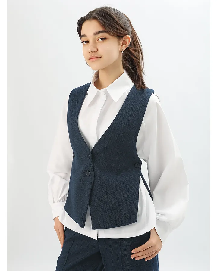 Отличная жилетка, оригинальная, взяли на размер больше, хорошо села как оверсайз