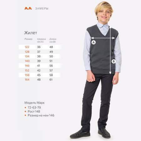 Жилет HappyFoxНа 151см роста ребёнка взяли 152 размер и он немного великоват и вырез глубокий. Вот не знаю может у 146 размера вырез меньше,но как размер будет