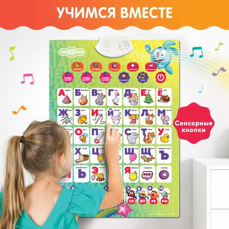 Двусторонний плакат Умка 3в1 Русская азбука Английския азбука Квест Играем в сказкиХороший плакат, но очень тихий звук