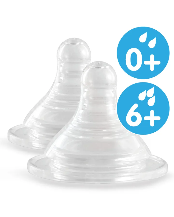 Скорость потока зависит от количества и размера отверстий в соске. Для новорожденных выбирайте соски с медленным потоком (1 отверстие), чтобы малыш не захлебывался. По мере роста ребенка можно переходить на соски с более быстрым потоком.