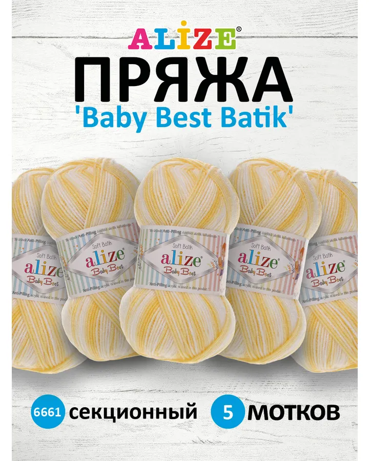 Пряжа для вязания Alize baby best batik бамбук акрил с эффектом антипиллинг 100 г 240 м 7541 секционный 5 мотков