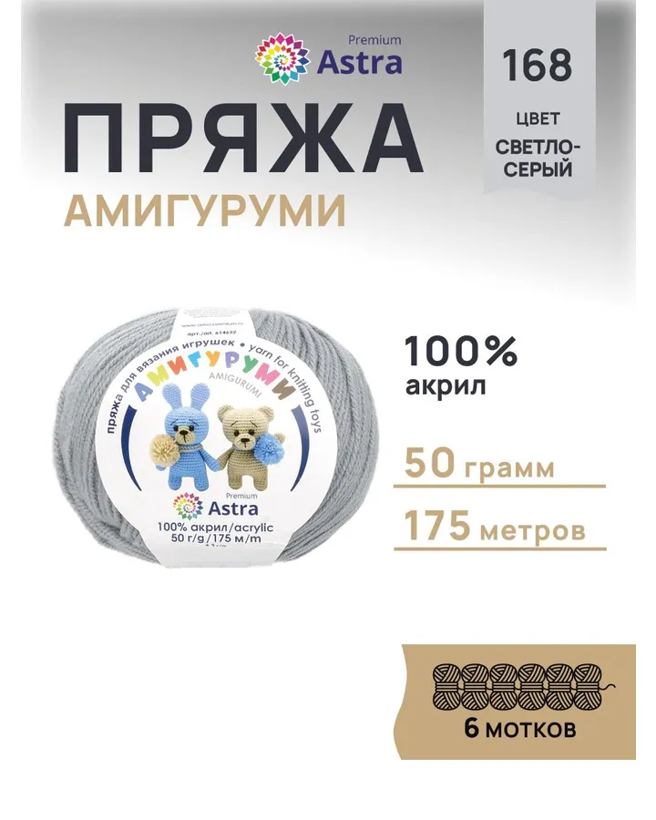 Пряжа для вязания Astra Premium амигуруми акрил для мягких игрушек 50 гр 175 м 046 красный 6 мотков