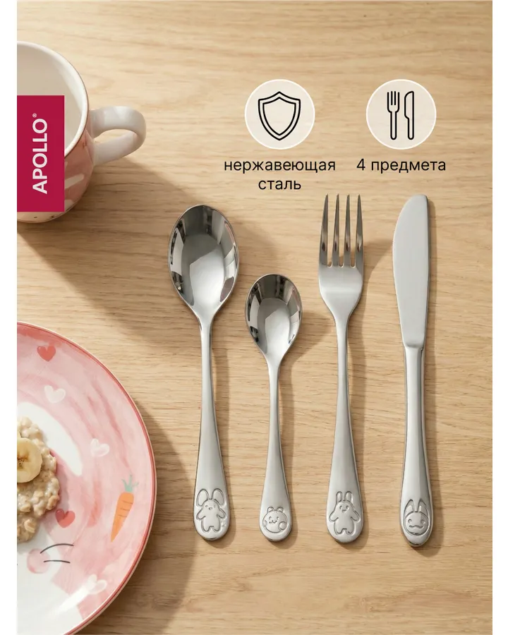 Детские столовые приборы включают ложки, вилки, тарелки и стаканы, специально разработанные для безопасного и удобного использования детьми.