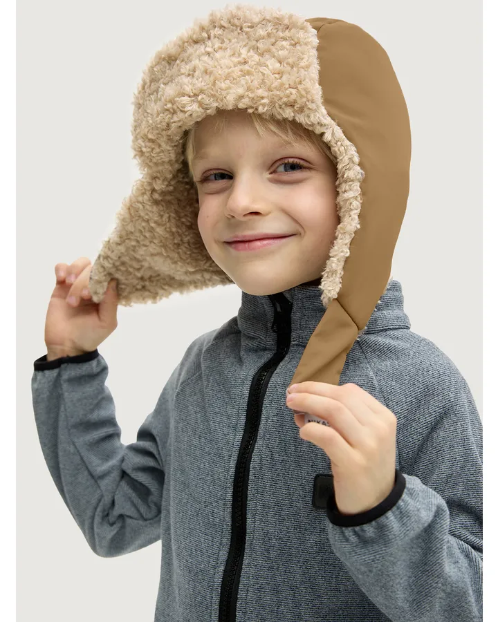 Если ребёнок любит бегать, кататься на санках или играть в снежки, обычная шапка может не справиться. Здесь нужны модели с плотной посадкой: шлемы, балаклавы или ушанки с завязками. Материал должен быть влагоотводящим и дышащим, чтобы пот не задерживался внутри.