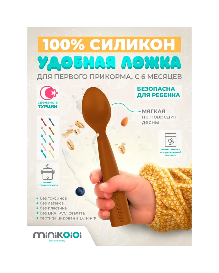 Первые ложки должны быть мягкими и небольшими, чтобы ребёнку было удобно держать их в руке. Силиконовые или пластиковые ложки с широкими ручками подойдут для самых маленьких. По мере роста малыша можно переходить на металлические ложки с эргономичными ручками, которые легче держать.