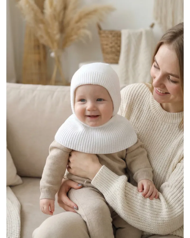 Шапочка нужна, если на улице прохладно или ветрено. В тёплую погоду (+15 и выше) можно обойтись без неё. Главное — следить, чтобы уши и голова малыша не перегревались.