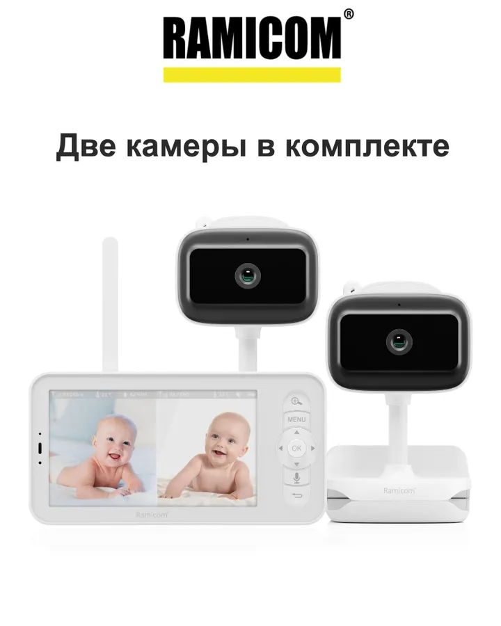 Модель с большим экраном (5 дюймов) и поддержкой радиочастотного канала. Имеет встроенный датчик температуры и возможность подключения дополнительных камер.
