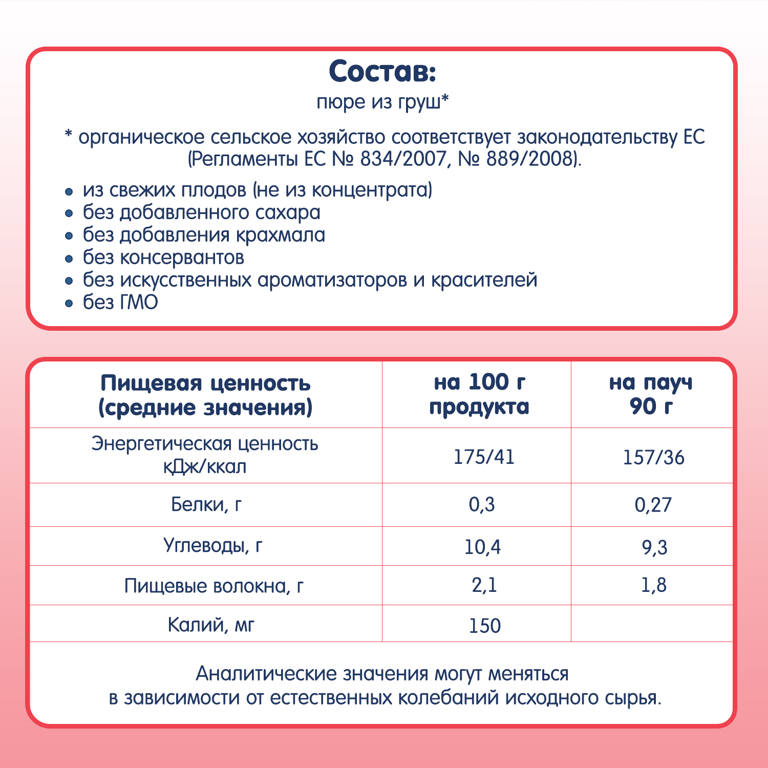 Начинайте вводить пюре Fleur Alpine ГРУША с одной чайной ложки, постепенно увеличивая объем в соответствии с возрастом ребенка и рекомендациями педиатра.