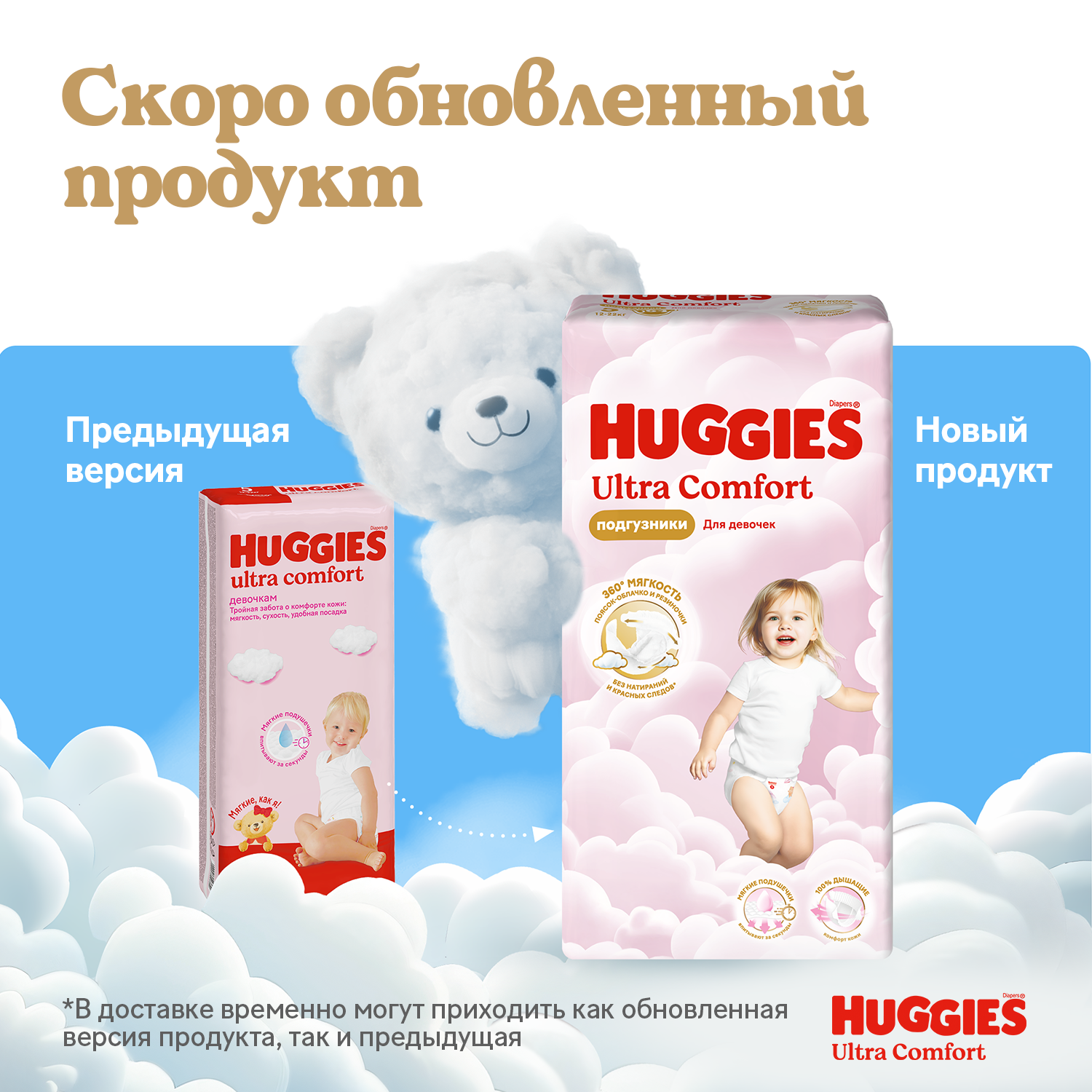 Новые подгузники Huggies Ultra Comfort для девочек дарят мягкость на 360°: ультрамягкие внутри и снаружи, они словно облачко обнимают вашего малыша. Сделанные из нежных материалов резиночки вокруг ножек и воздушный поясок-облачко снижают давление на кожу и риск появления натираний и красных следов даже при длительном ношении, при этом надёжно фиксируя подгузники на ребёнке.