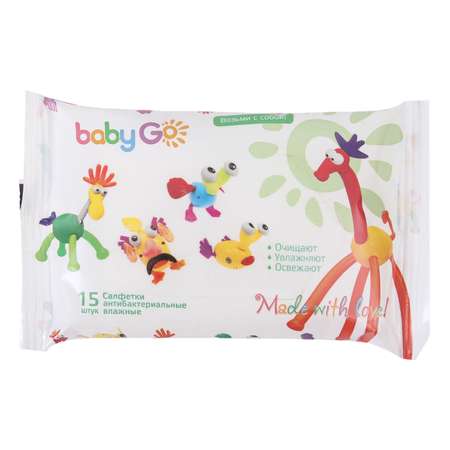 Влажные салфетки BabyGo антибактериальные 15 шт.
