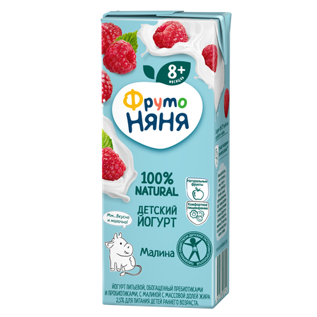 Йогурт ФрутоНяня питьевой с малиной 2,5% 2,0 л с 8 месяцев