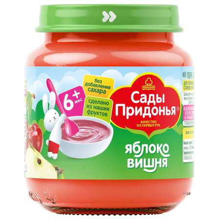 Пюре Сады Придонья "Яблоко - вишня" — прекрасное начало прикорма для малышей от 6 месяцев.