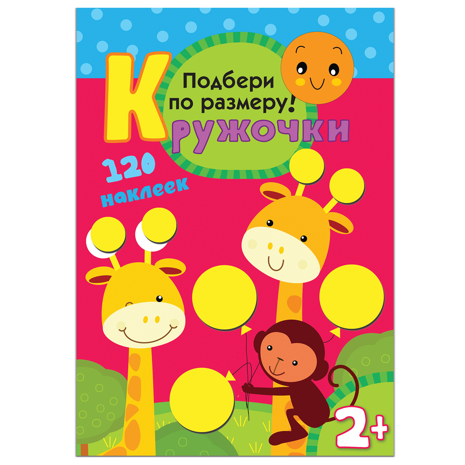 В этой весёлой книжке ребёнку предлагаются доступные развивающие задания: подобрать наклейки-кружочки по размеру и приклеить в нужное место.