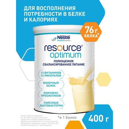 Resource Optimum (Ресурс Оптимум) — полноценный сбалансированный продукт диетического питания для оптимальной поддержки организма.