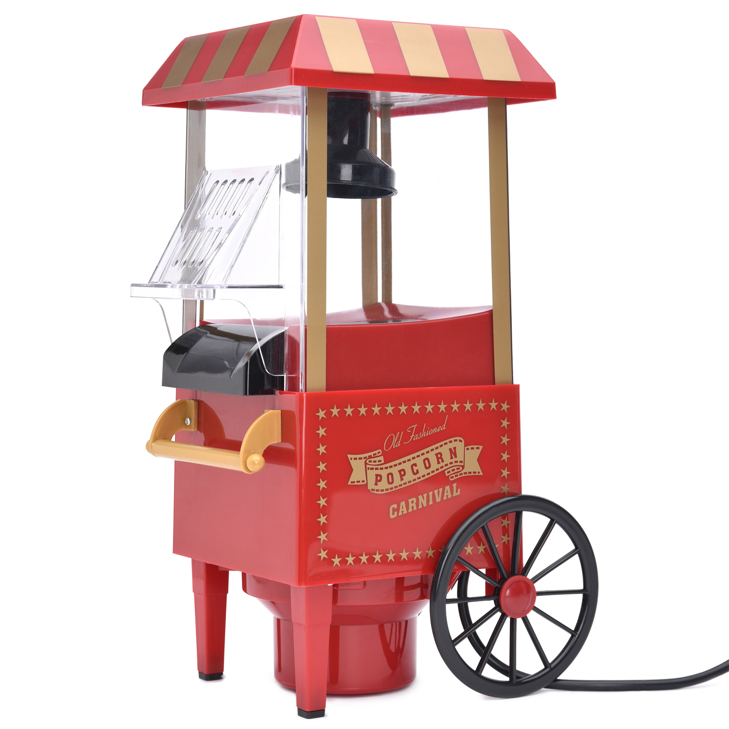 Откройте верхнее отверстие попкорницы, засыпьте зерна кукурузы до отметки, закройте крышку, включите аппарат, подставьте тарелку под отверстие для выдачи попкорна. Спустя 3-4 минуты первая порция будет готова