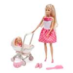 - Кукла-мама может возить малышку на прогулку в удобной коляске.