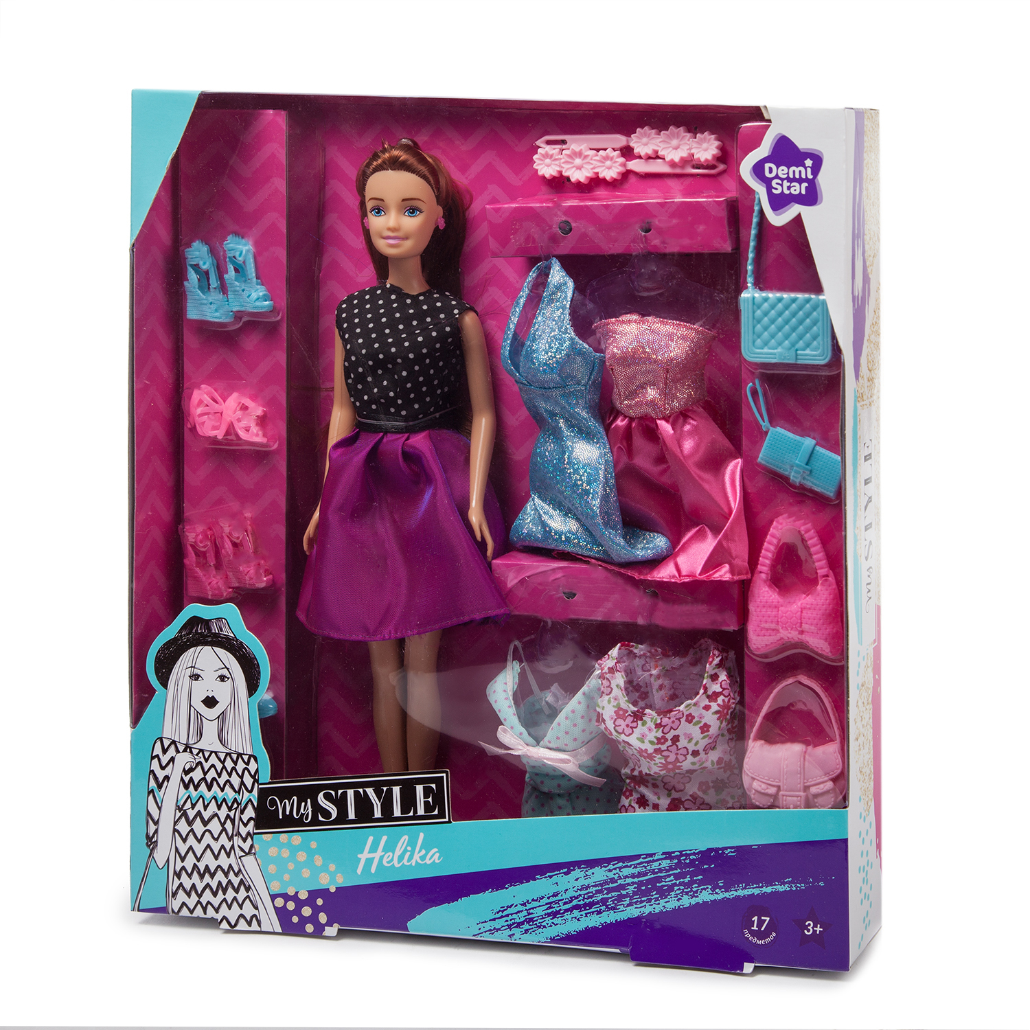 Модельная кукла Demi Star знает толк в моде и стиле! Ее наряды безупречны, и к ним всегда подобрана идеальная пара обуви и сумочка. Экспериментируйте со стилями и аксессуарами во время увлекательной игры!