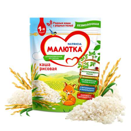 В основе наших рецептов – отборные злаки с российских полей, выращенные и отобранные по высоким стандартам качества. Создавая детские каши «Малютка», специалисты компании Nutricia вдохновлялись природой регионов России. Каши Малютка без добавленного сахара способствуют формированию здоровых вкусовых предпочтений. Каждая порция содержит необходимые для развития белки, витамины и минералы, а также углеводы, которые дают малышу энергию для здорового роста. Каша "Малютка" безмолочная рисовая производится БЕЗ пальмового масла и БЕЗ добавления сахара и соли и не содержит глютена. Она подойдет для малышей с риском развития аллергии. Каши Малютка – вся сила России для вкусного и высококачественного прикорма вашего малыша.
