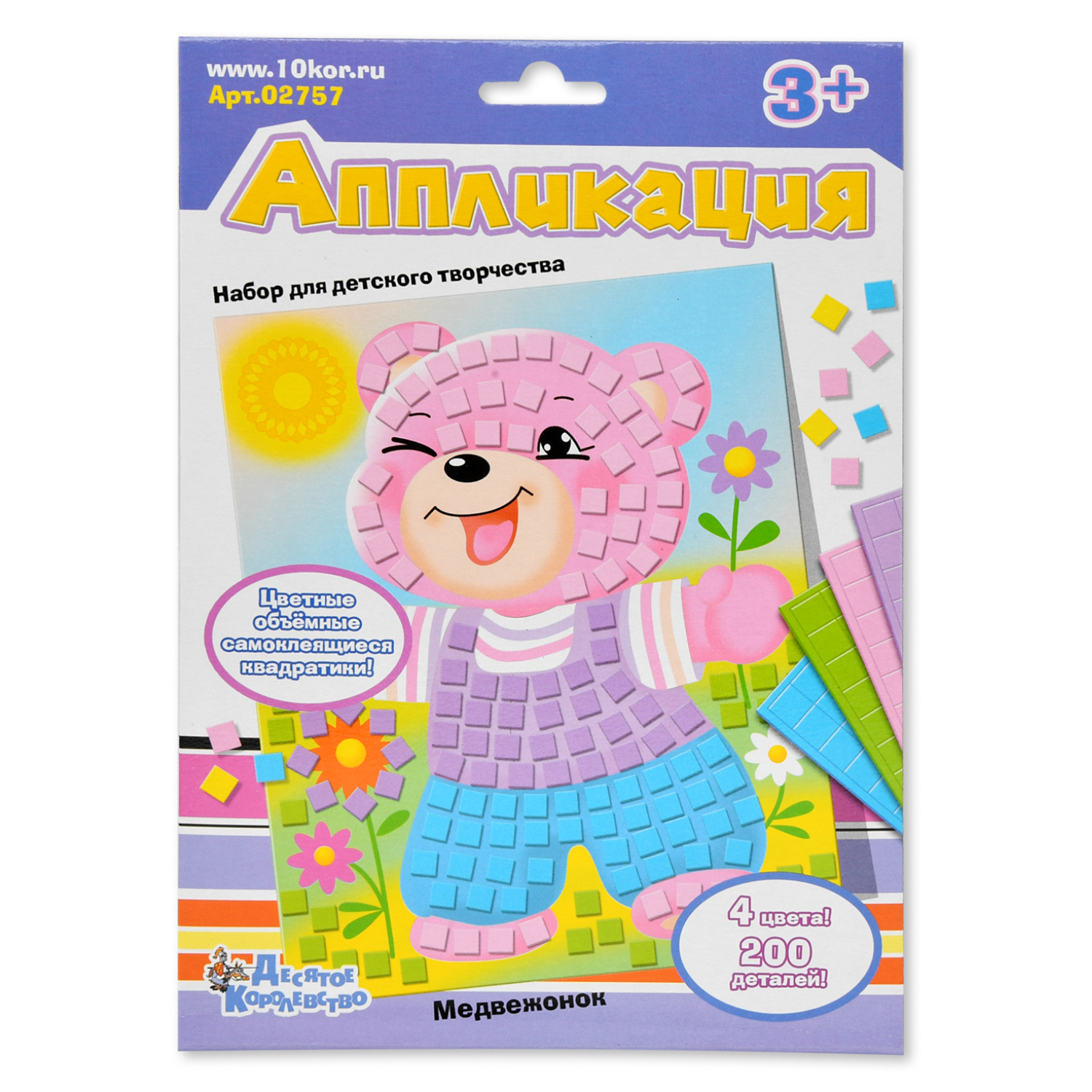 Порадуйте вашего ребенка набором для творчества от Десятого королевства. С помощью аппликации дети смогут создать необычайно красивые, яркие и объемные картинки! При этом малыш легко справится с работой, ведь ему не понадобятся ножницы и клей!