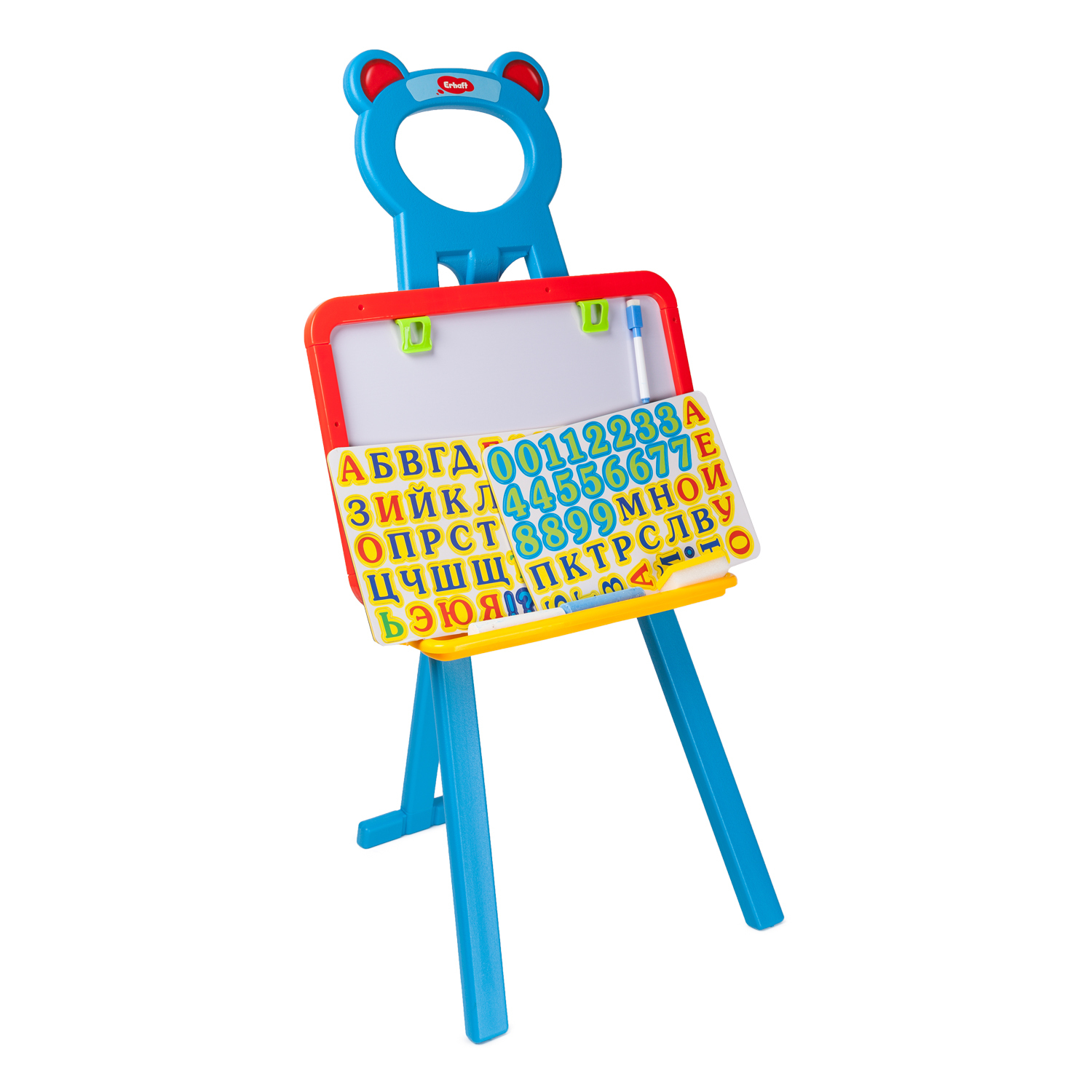 - Хороший,яркий мольберт,в комлекте много всего. Маркер,мелки,магниты(их кол-во особенно радует) . Жаль,сам мольберт очень неустойчивый,слишком лёгкий.