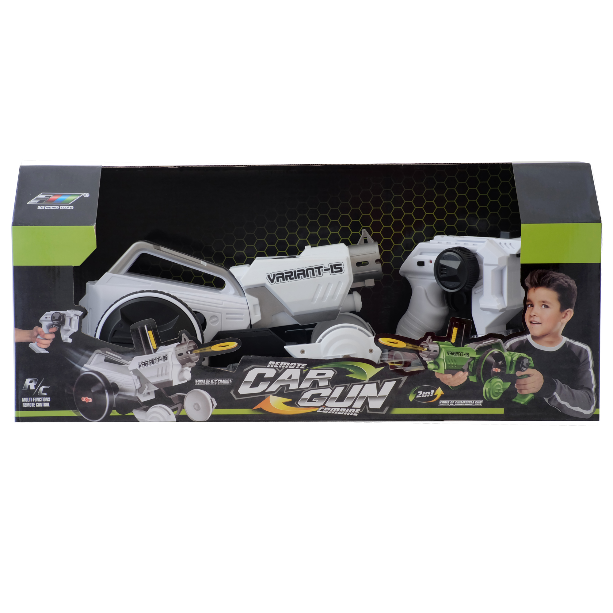 Радиоуправляемая машина и оружие 2 в 1. Игрушка трансформируется из бластера в машинку с пультом, стреляет мягкими дисками.