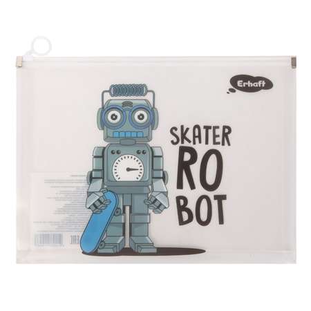 Папка Erhaft - с прозрачными стенками и рисунком робота-скейтера, надежно закрывается. Красивый и практичный вариант для хранения бумаг.