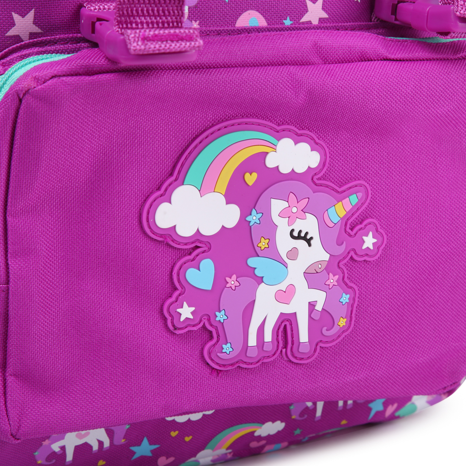 Рюкзак Maxleo – удобный аксессуар для школьника. Полезные мелочи можно распределить по карманам, а сказочный узор с единорогами создает красивый визуальный эффект.