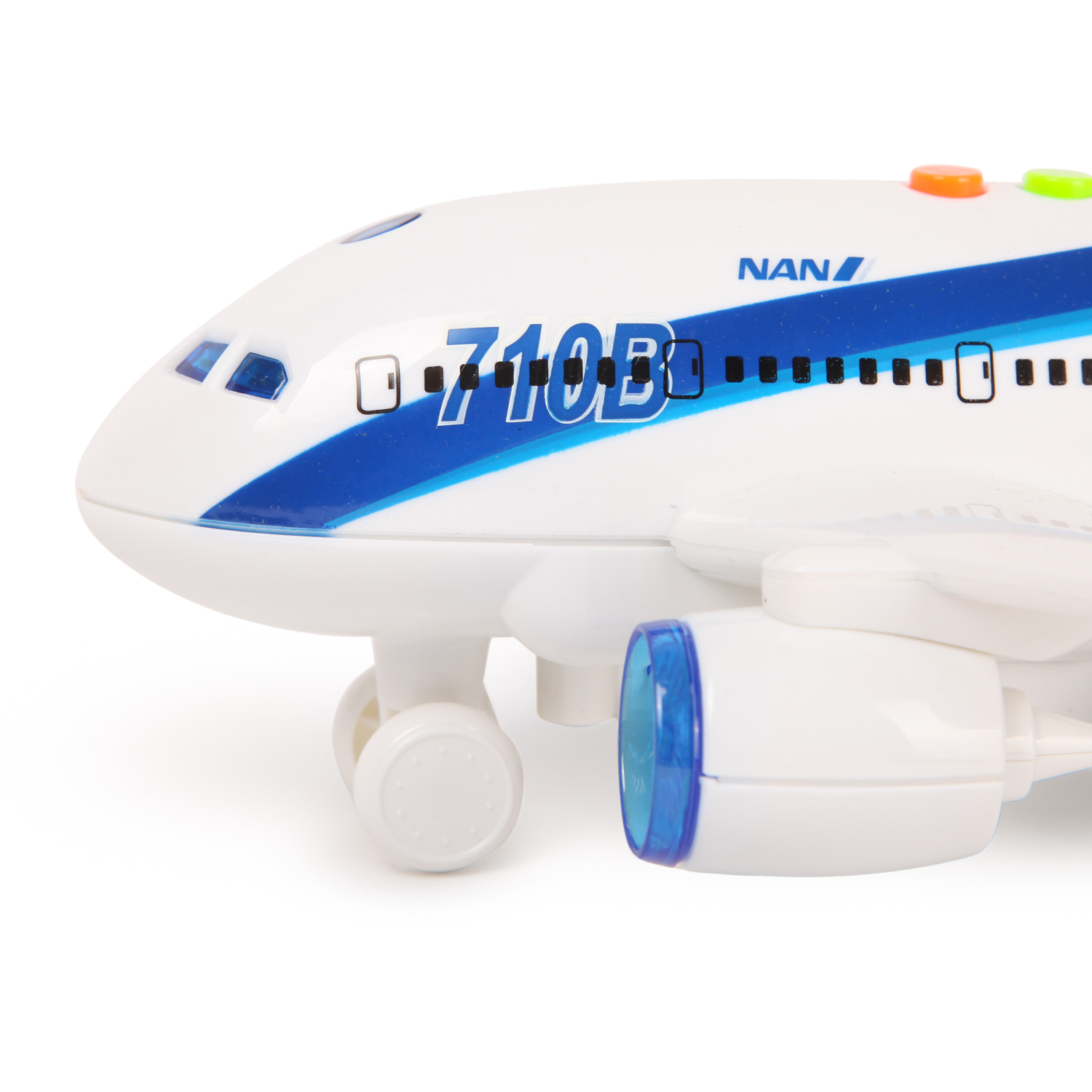 - Отличный самолёт, ребенку очень понравился! Выполнен качественно, свет и звук работают на отлично, хорошо катится. В отзывах пишут, что у двух кнопок одинаковый звук - это так, но на одной говорят о взлете, а на второй о посадке, кто не знает английский, пишет что звук одинаковый. Брали по акции. В общем только восторг и у ребенка, и у меня