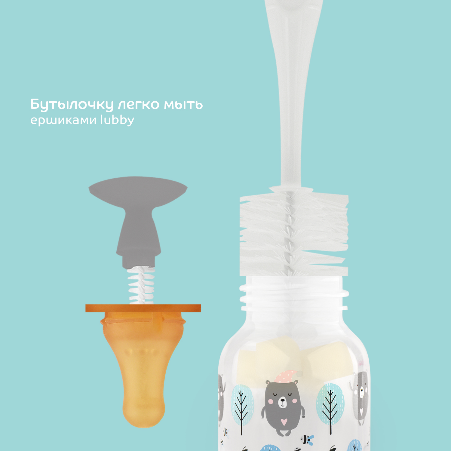 Бутылочка lubby относится к товарам раннего использования. В этом направлении используются спокойные, нежные тона, преобладает модный серый цвет, который оттеняется пастэльными цветами – голубым, лиловым, розовым, желтым. Героями этого направления стали милые лесные обитатели – ежик, зайчик, белочка, мишка и предметы их окружения. Товары этого направления можно легко отличить по упаковке, выполненной в тех же нежных тонах.