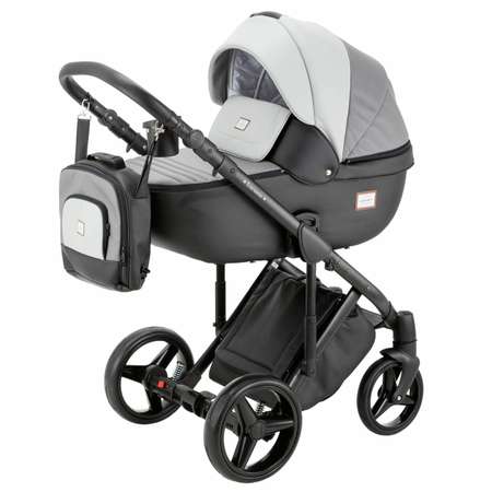 Коляска 3в1 Adamex Luciano Deluxe Q259 Черная-Темно-серая-Светло-серая кожа