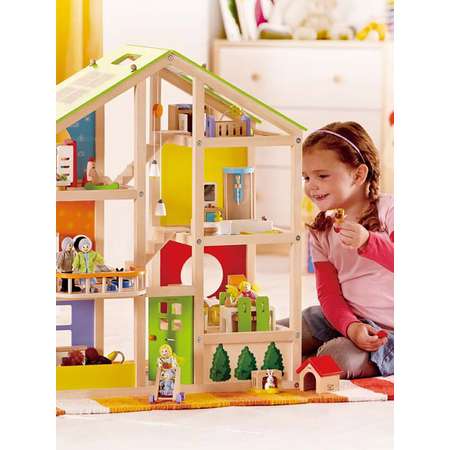 Кукольный домик HAPE Времена года с двусторонней крышей и мебелью 36 предметов E3401_HP
