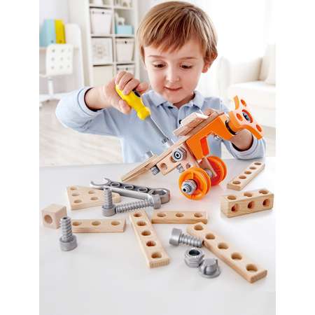 Инженерный набор Hape развивает логическое мышление во время игры.