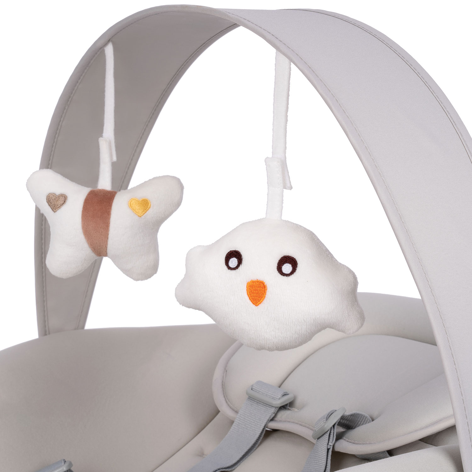 В целях безопасности качалка для новорожденных оснащена пятиточечными ремнями безопасности, которые надежно фиксируют малыша и не позволят ему перевернуться или выпасть из качелей.