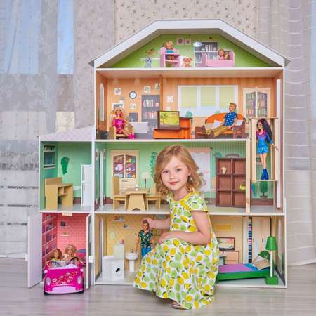 Игрушечный дом для кукол Поместье Николетта частично открытый (задняя стенка глухая, все игровые зоны с лицевой стороны полностью доступны для игры).