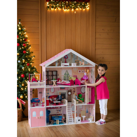 В доме 4 этажа, 6 комнат, веранда, балкон и гараж для кукольного транспорта.