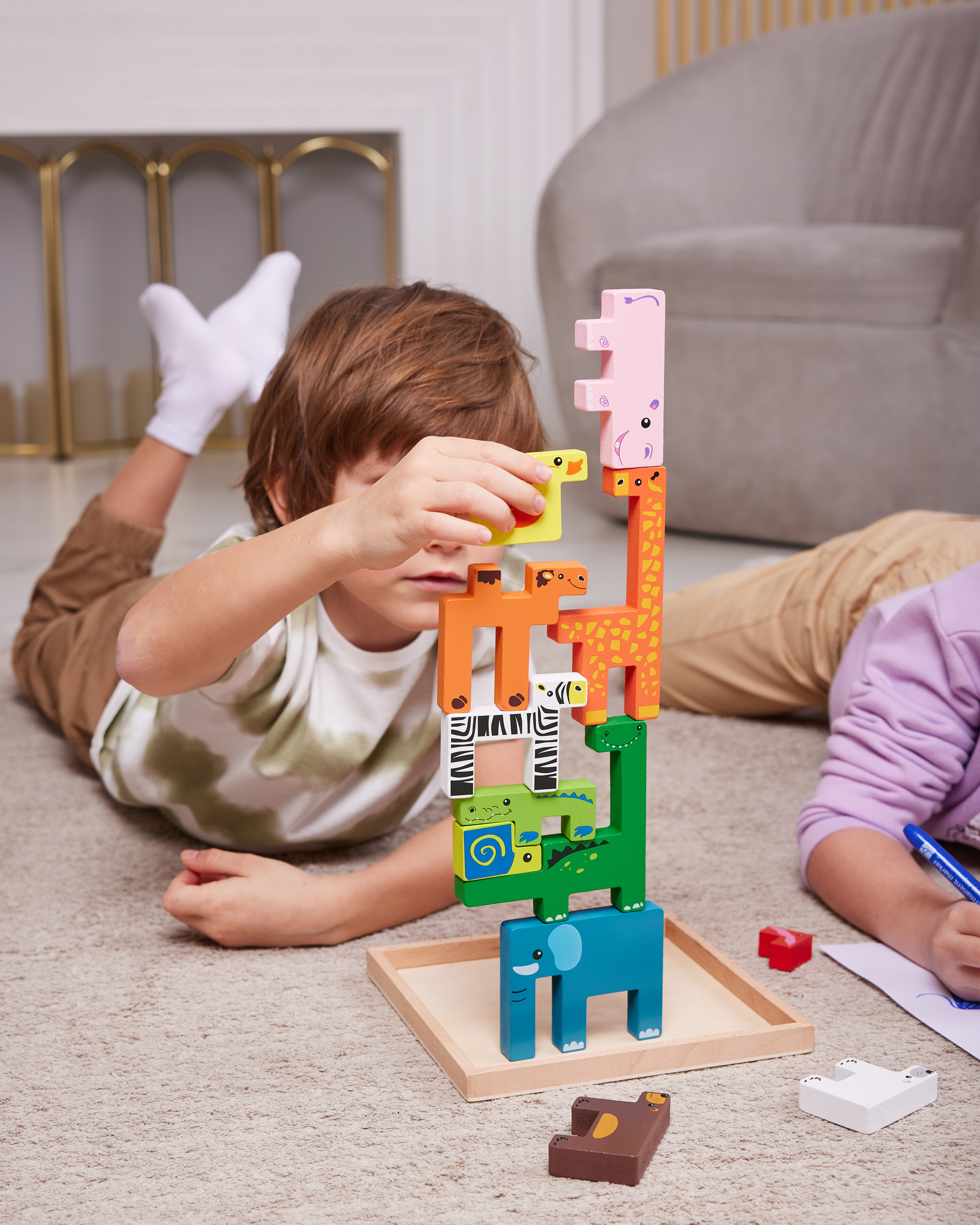 Деревянный пазл Attivio – это настоящий Zoo Tetris! Собирайте пазл из деревянных зверушек, стройте башни, или придумайте свой вариант игры.
