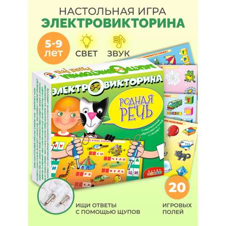 Настольная игра для детей 5-9 лет Электровикторина Родная речь – это интерактивная игра с заданиями по русскому языку.