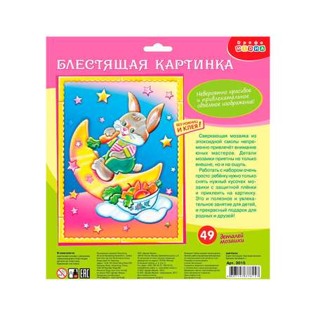 Эксклюзивный набор для создания объёмной картины из деталей необычной фактуры разных размеров и форм. Детали набора гладкие и приятные на ощупь благодаря необычному полупрозрачному сверкающему покрытию. Главное ─ точно и аккуратно приклеить деталь на рисунок и фрагменты картинки сложатся в единое изображение. Готовое изделие завораживает волшебным блеском, смотрится очень эффектно и оригинально.