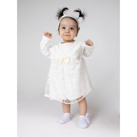 - Потрясающее платье! Приятное на ощупь, спереди, поверх х/б ажурная ткань. Кнопочки на спинке. Повязка мягкая. Все красиво и удобно для маленькой принцессы)