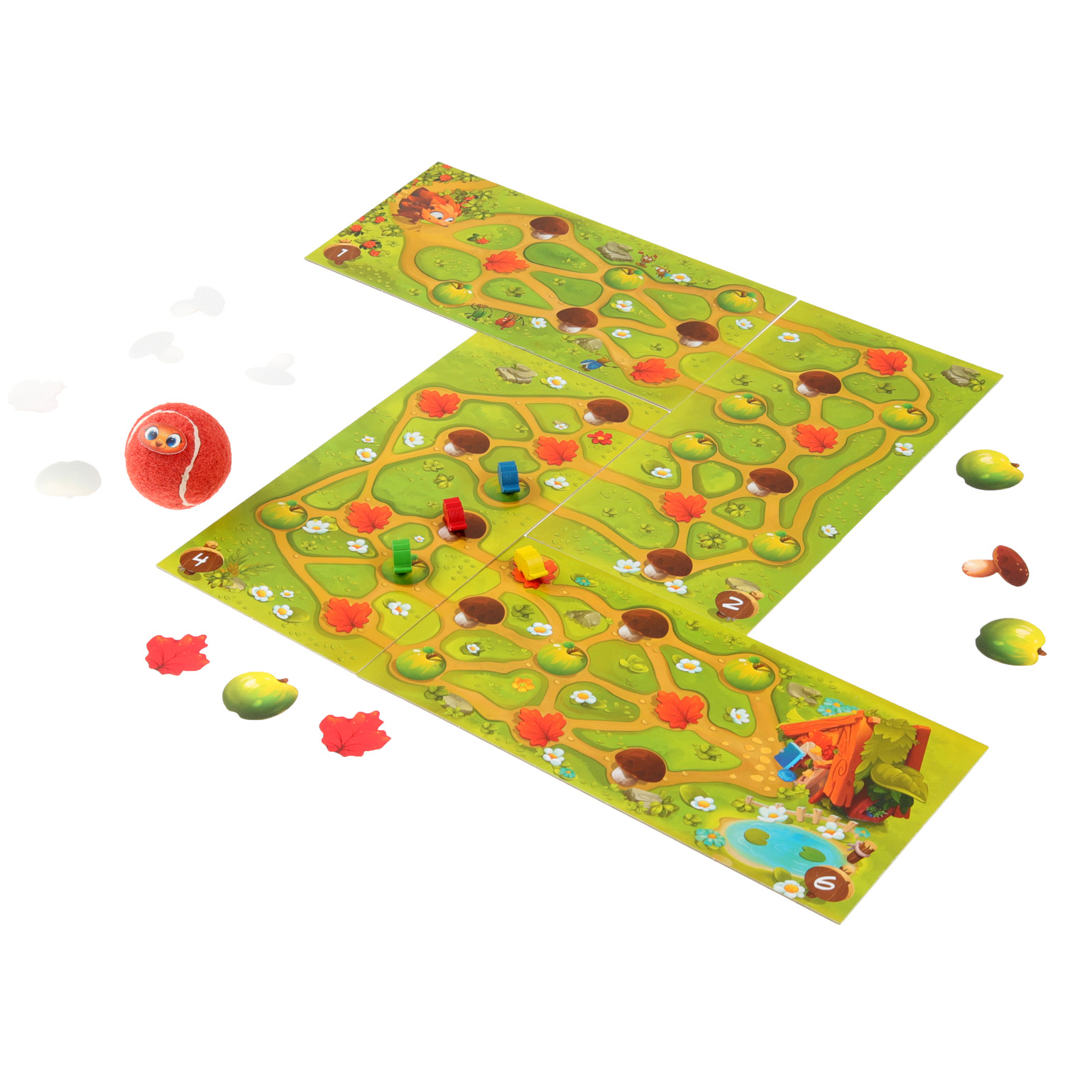 Ёжики будто на иголках: очень уж им хочется добраться домой поскорее! Но сначала им нужно сделать запасы на зиму! Соревнуйтесь с друзьями в ежиной перекати-гонке: бросайте мохнатый мячик на жетоны-липучки и собирайте яблочки, листочки и грибочки, чтобы продвинуться по лесной тропинке к домику ежа. Или попробуйте кооперативный режим настольной игры Перекати-ёжик: все вместе помогайте одному ёжику убежать от коварной лисы! Вы можете сами регулировать сложность этой игры самыми разными способами, а потому она отлично подойдёт и для восторженных ежат, и для опытных ежей!